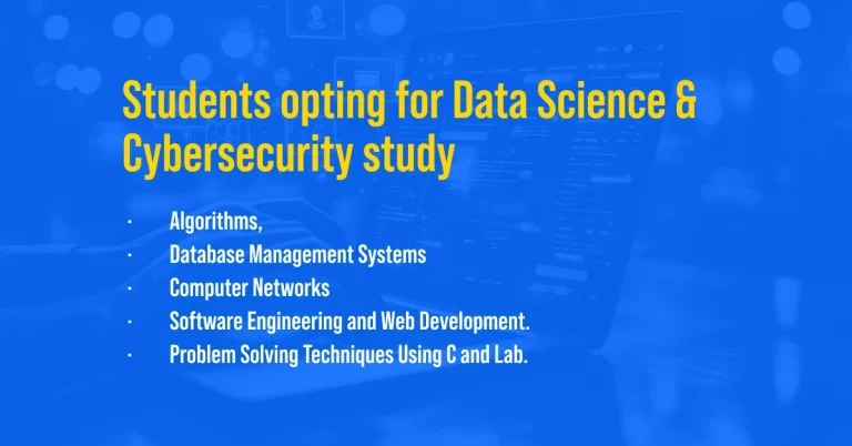 Students opting for Data Science and Cybersecurity study the following subjects: –