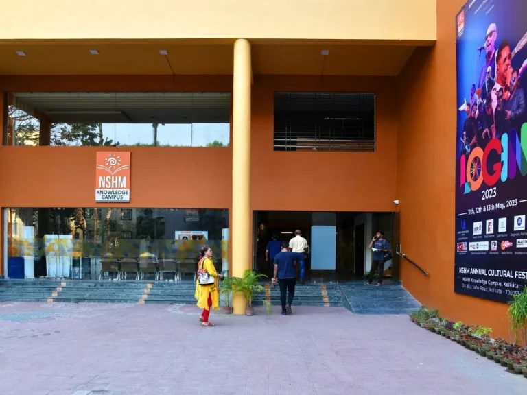 NSHM Kolkata has a modern campus with classrooms, labs, hostel facilities, and Wi‑Fi access.